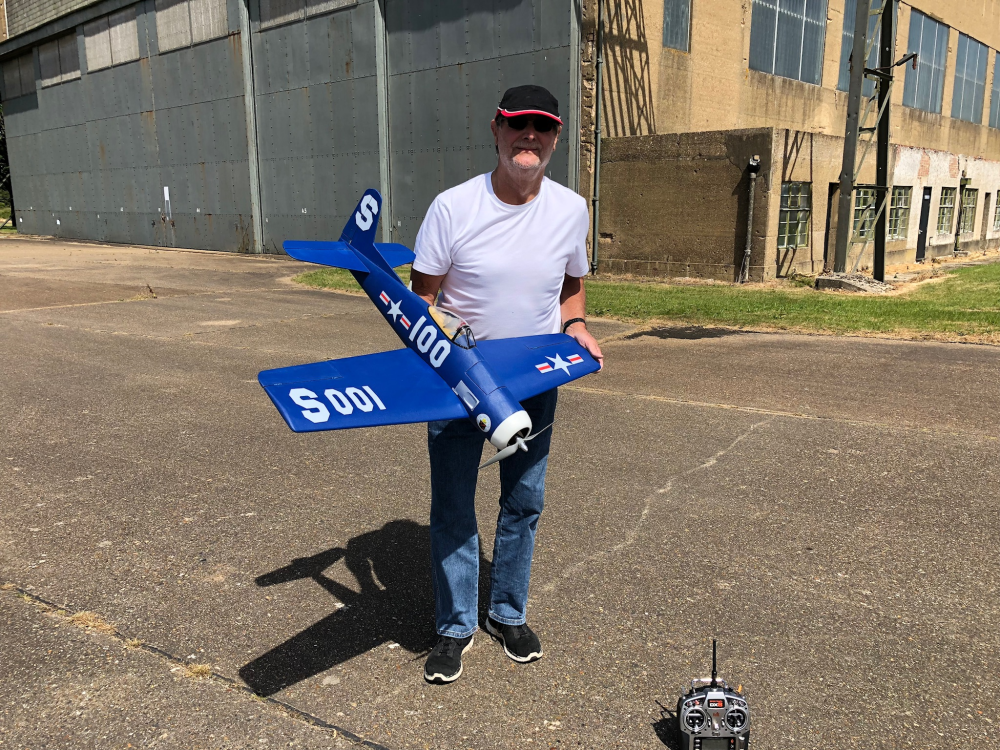 - Colin with his Keilkraft kit built Invader converted to rc and electric